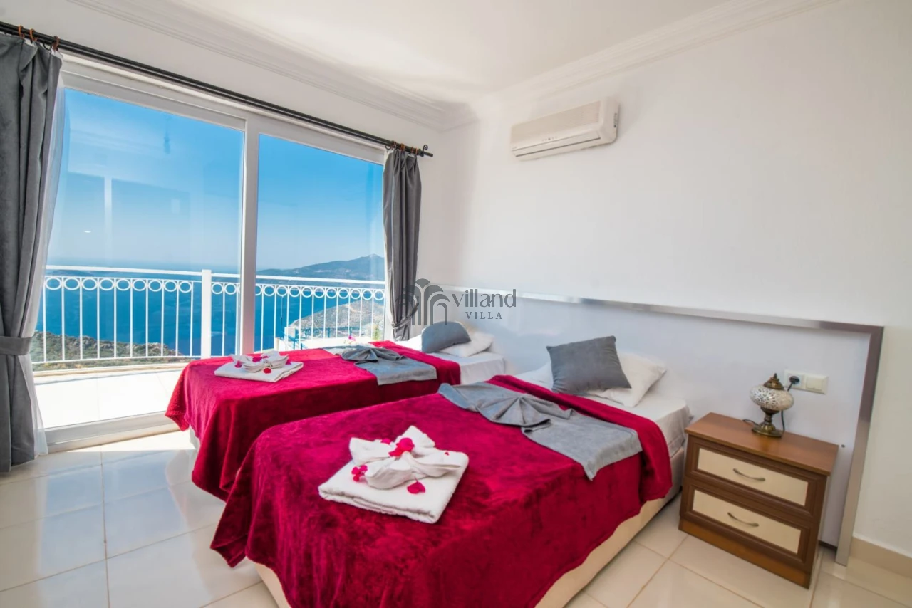 Villa, 3 şık yatak odasıyla misafirlerine rahat bir konaklama imkanı sunar. Birinci yatak odasında çift kişilik yatak, ikinci odada iki tek kişilik yatak ve üçüncü odada da bir çift kişilik yatak bulunur. Her odada klima ve özel banyo mevcuttur, böylece her misafir maksimum rahatlıkla konaklayabilir.