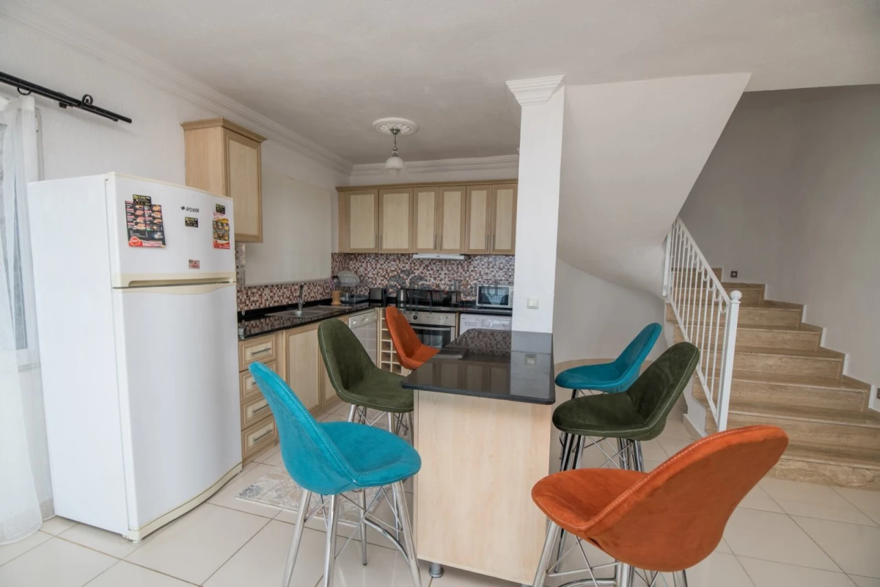 Villada, geniş bir Amerikan mutfak, temel mutfak ekipmanlarıyla donatılmış olup, konukların yemek hazırlama ve vakit geçirme keyfini üst düzeye çıkarır. Buzdolabı, bulaşık makinesi, çamaşır makinesi, fırın, ocak, mikrodalga fırın, elektrikli su ısıtıcısı ve tost makinesi gibi tüm mutfak gereçleri, tatiliniz boyunca ihtiyaç duyabileceğiniz her şeyi sunar. Salon ise deniz ve doğa manzarasıyla donatılmış geniş bir alandır. İç mekan, konforlu oturma grubu, TV, klima ve kablosuz internetle donatılmış olup, keyifli bir zaman geçirmek için ideal bir ortam sunar.