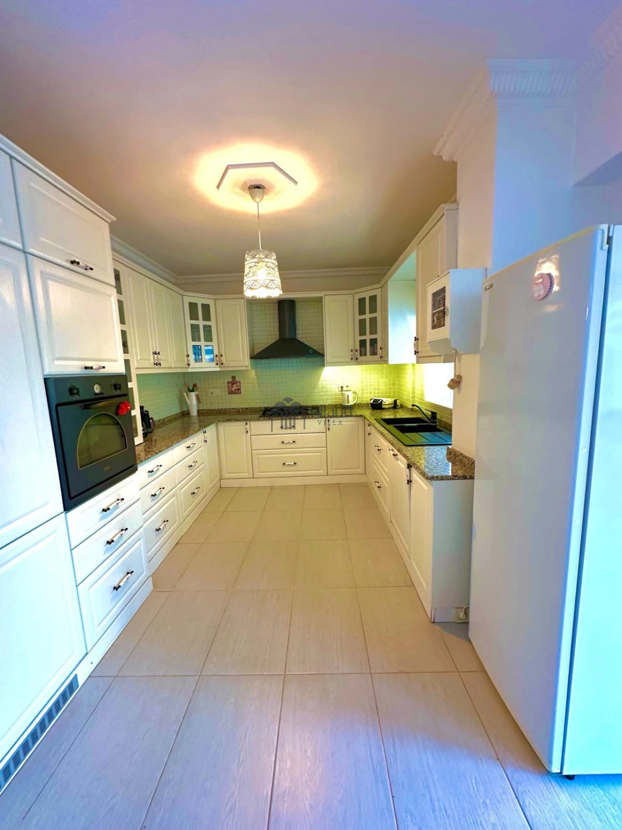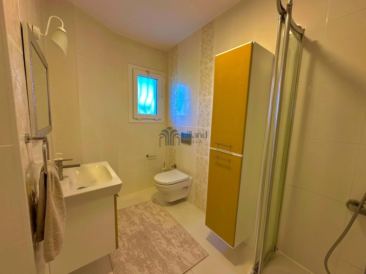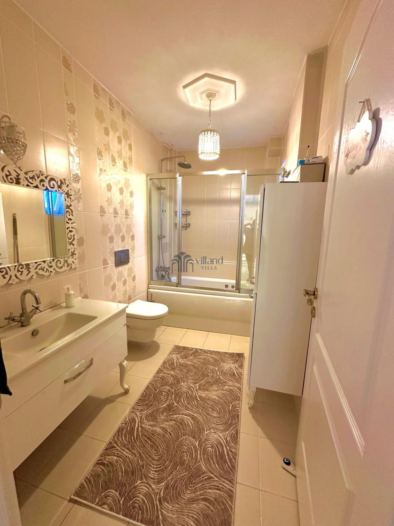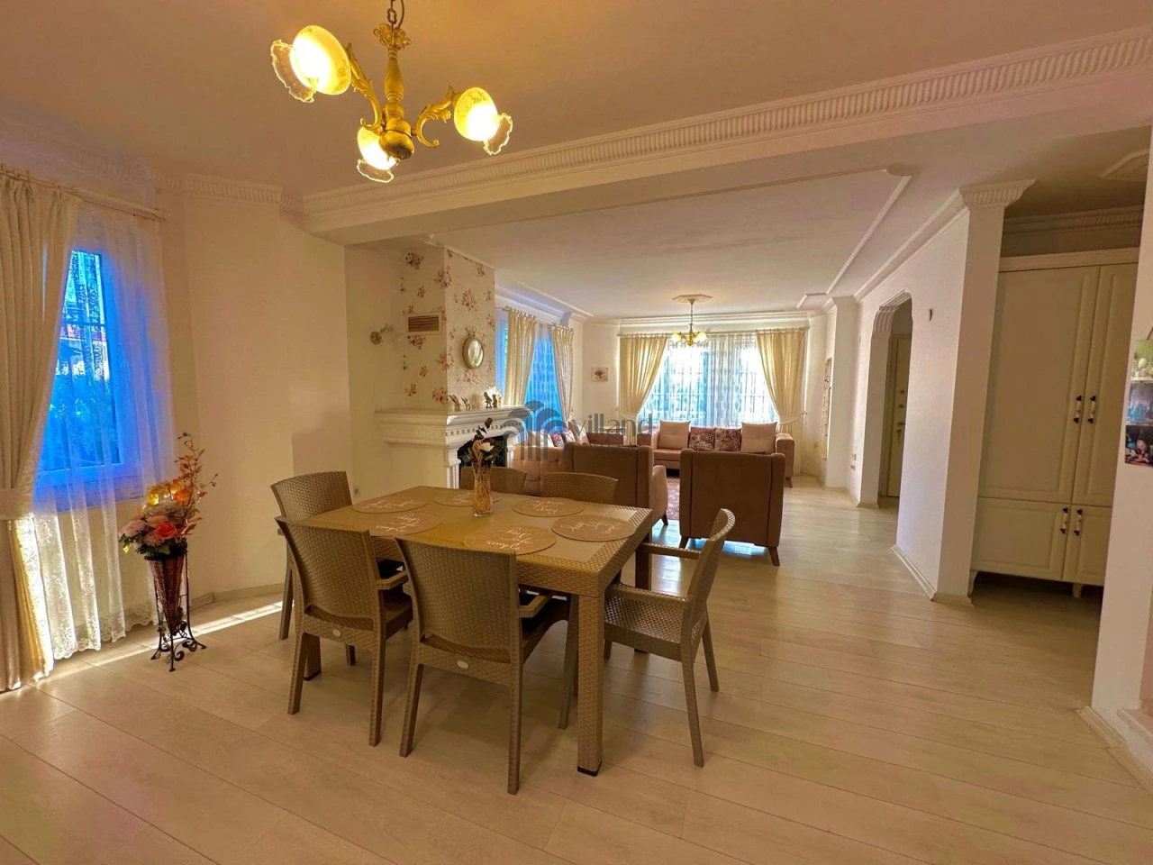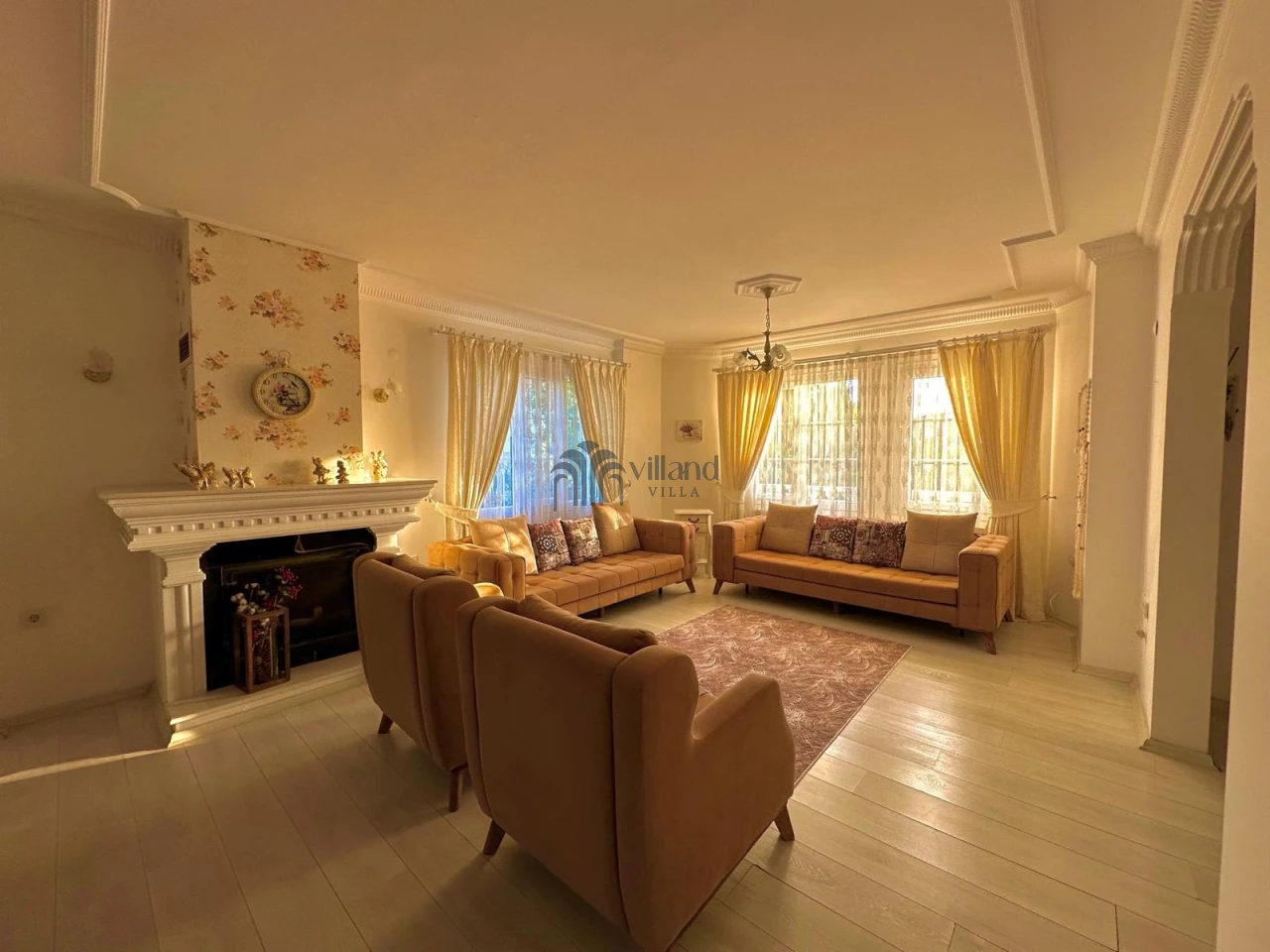 • Giriş katında: 2 salon (birinde TV ve klima), açık mutfak, ortak banyo (jakuzili)