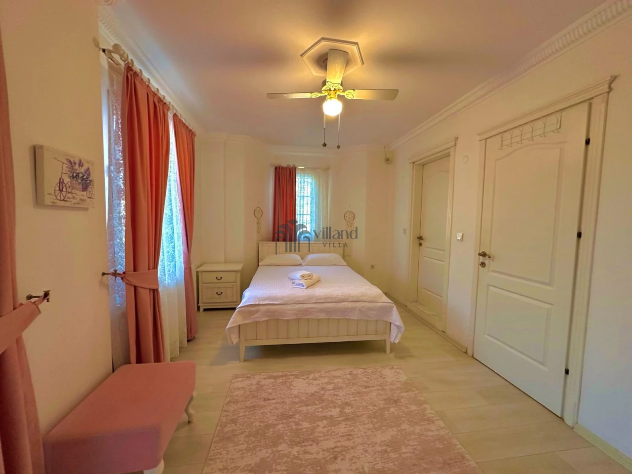 • İkinci katta: 2 çift kişilik yataklı oda (her ikisinde ebeveyn banyosu ve klima), 1 çift kişilik yataklı oda (giyinme odası ve klima)